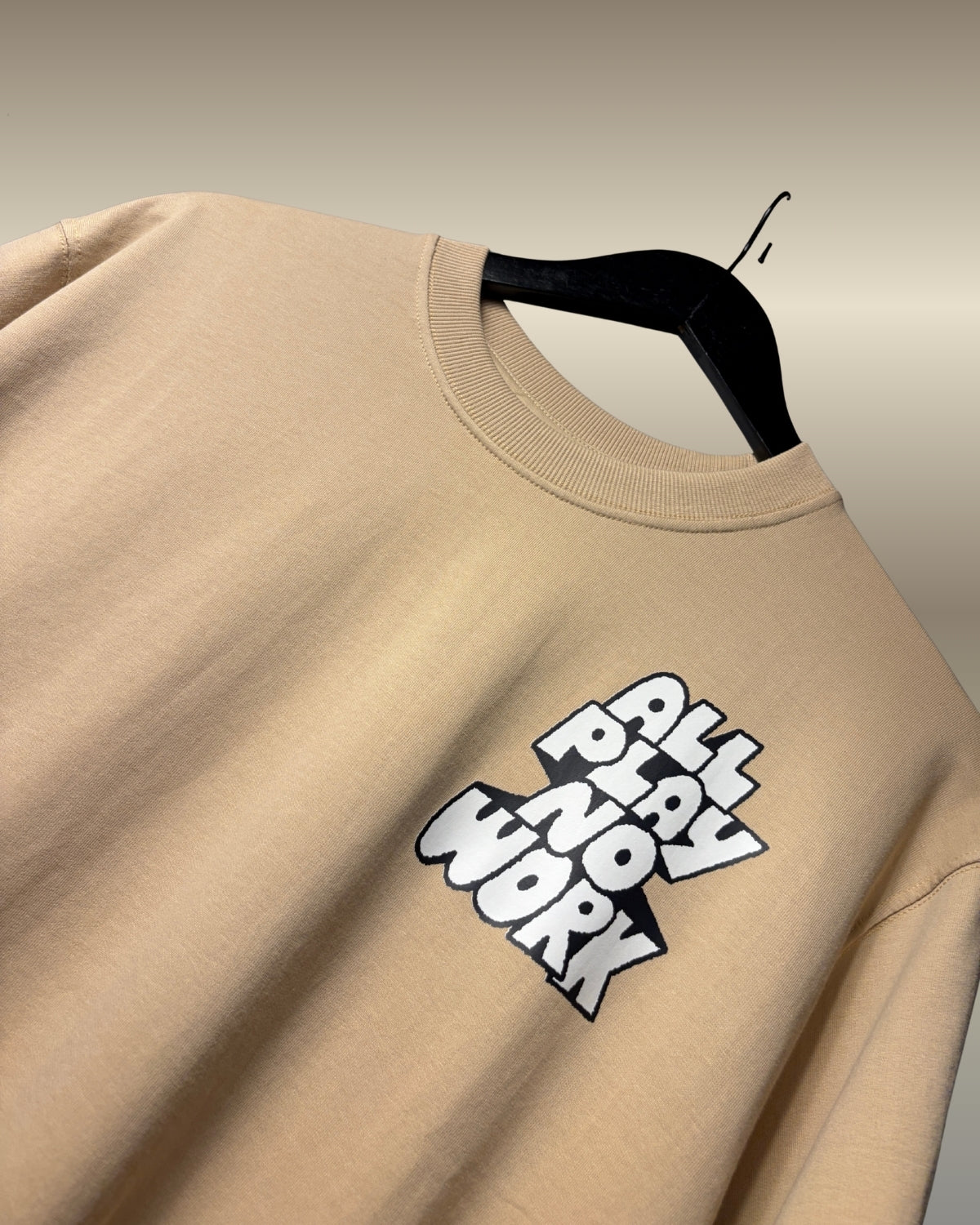 ‘ALL PLAY NO WORK' - The graphic is embedded using a state of the art direct-to-film technology in a 240 GSM Premium French Terry Fabric. Comes in an all new Classic V2 fit which is the same as the regular Classic Oversized Tees but slightly cropped in length.