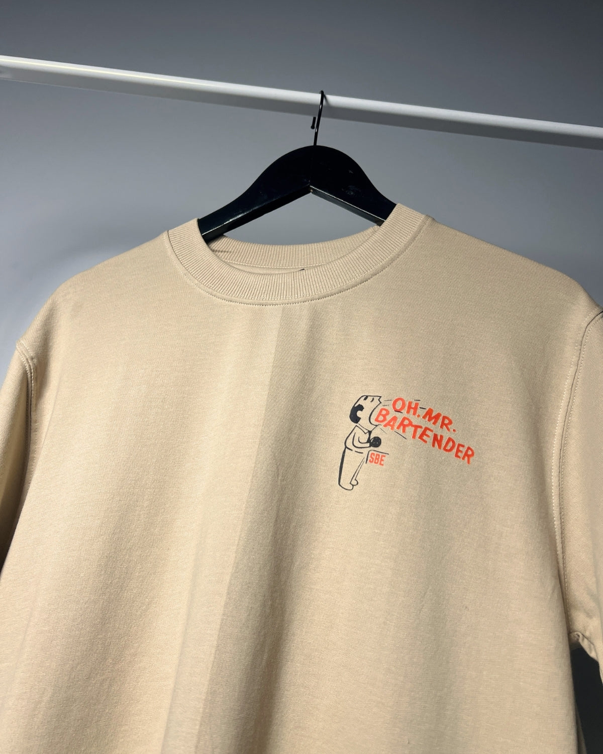“cin cin” - graphic is embedded using a state of the art direct-to-film technology in a Beige 240 GSM 100% Cotton Fabric. Comes in an all new Classic V2 fit which is the same as the regular Classic Oversized Tees but slightly cropped in length.
