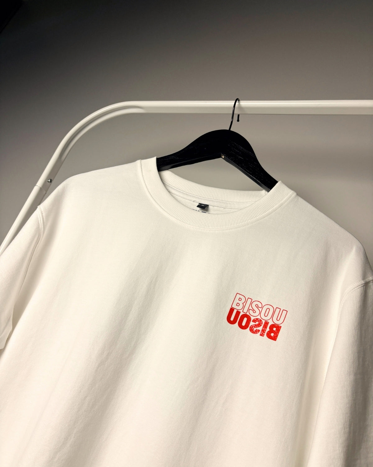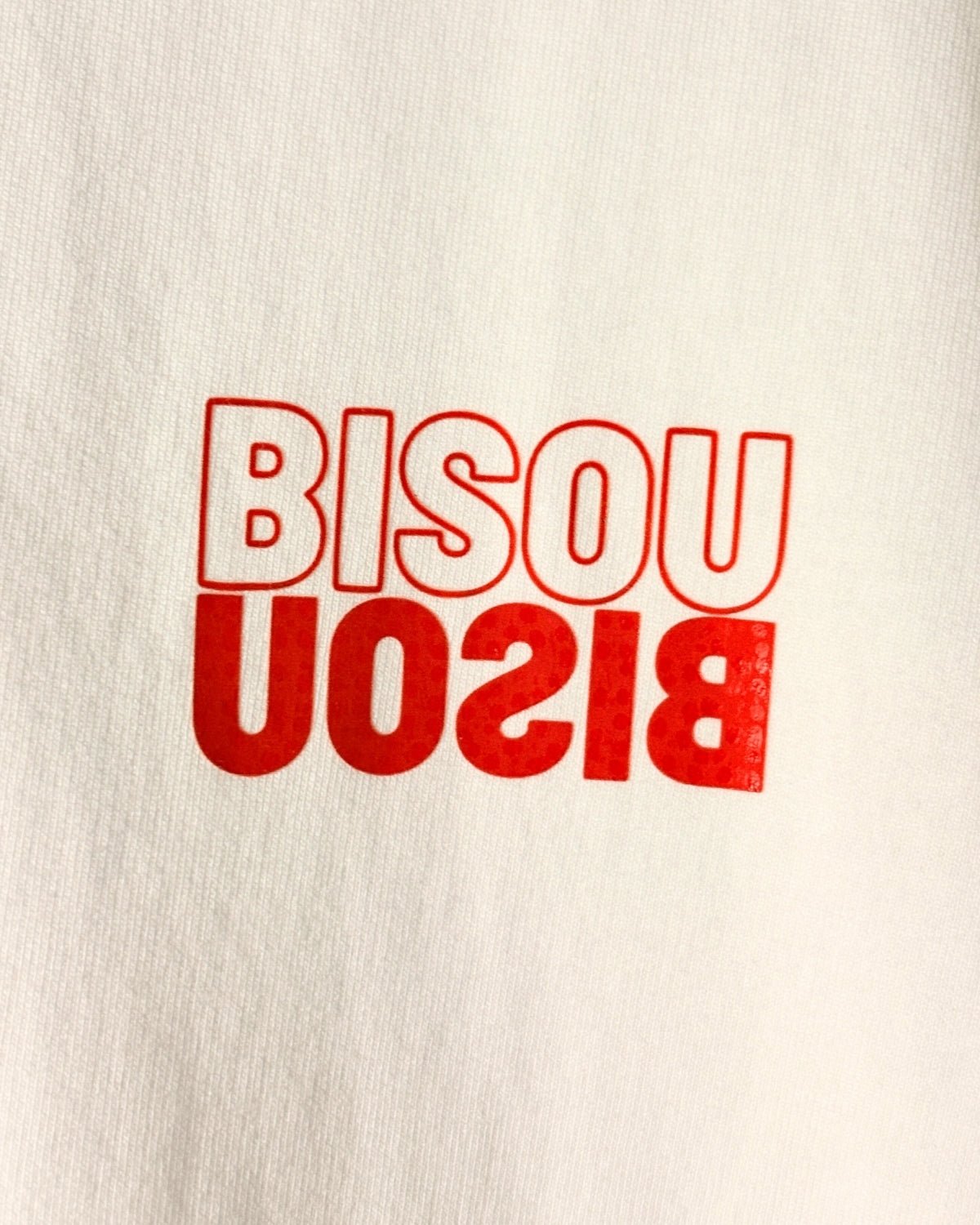 “BISOU” - graphic is embedded using a state of the art direct-to-film technology in a 240 GSM 100% Cotton Fabric. Comes in an all new V2 Plus fit - Classic V2 with added length.