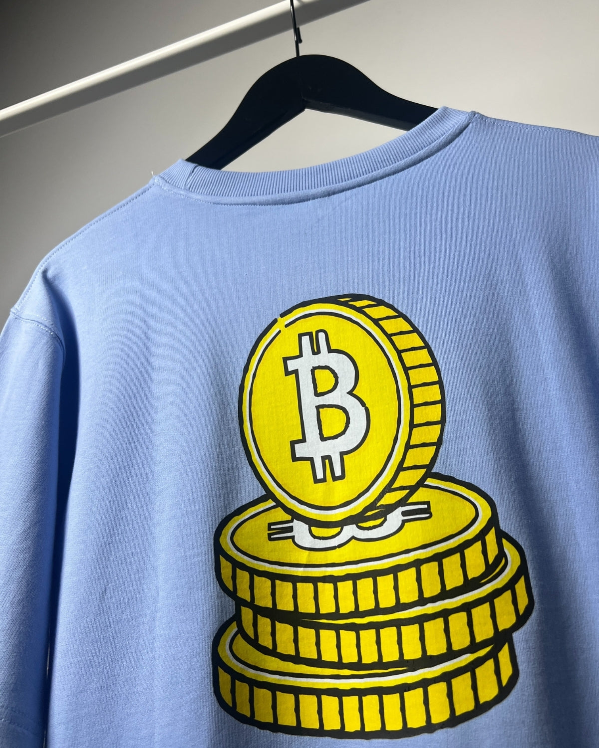 “BITCOIN” - graphic is embedded using a state of the art direct-to-film technology in a 240 GSM 100% Cotton Fabric. Comes in an all new V2 Plus fit which is the same as the regular Classic Oversized Tees but slightly cropped in length.