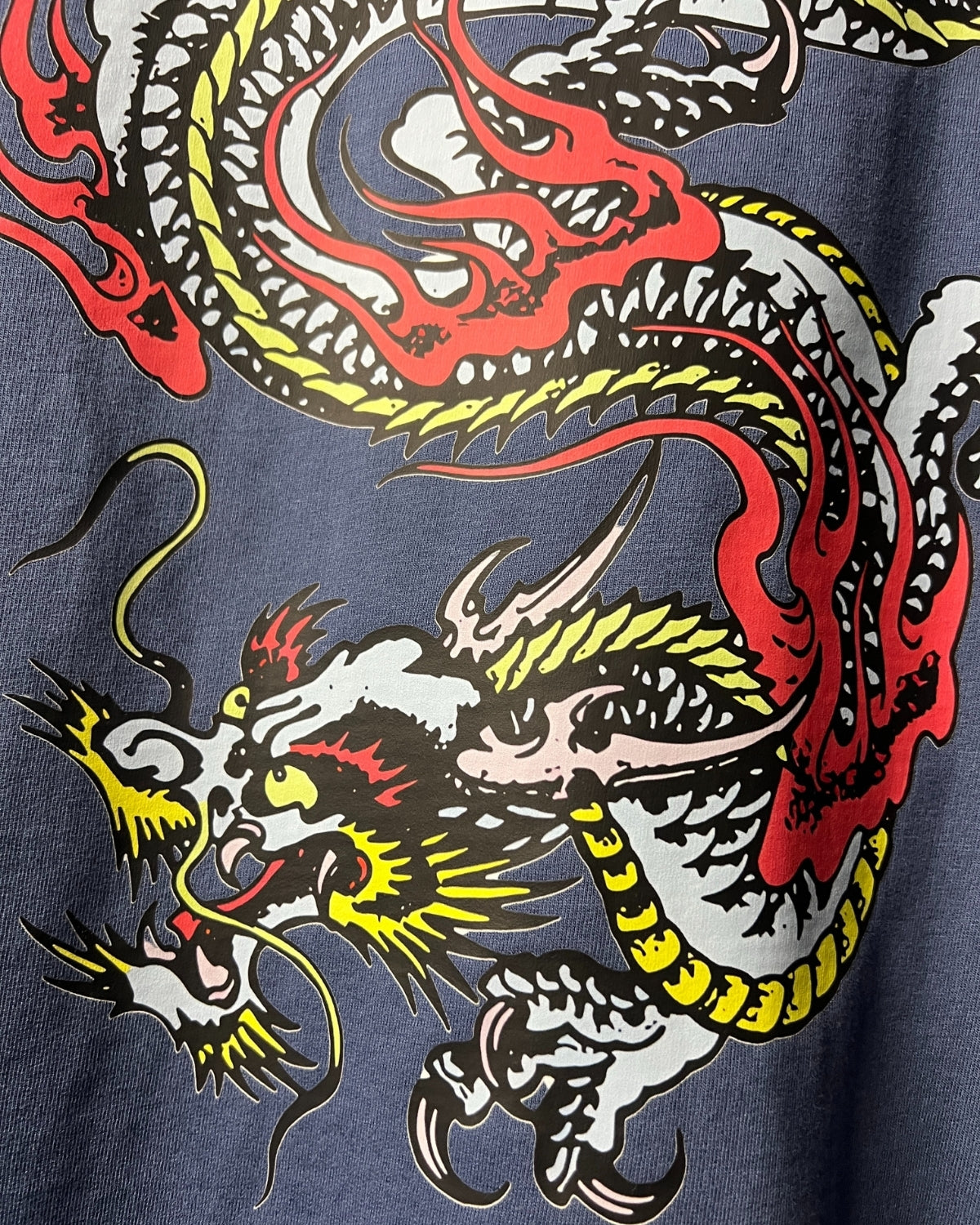 “BLUE DRAGON” - graphic is embedded using a state of the art direct-to-film technology in a 240 GSM 100% Cotton Fabric. Comes in an all new V2 Plus fit - Classic V2 with added length.