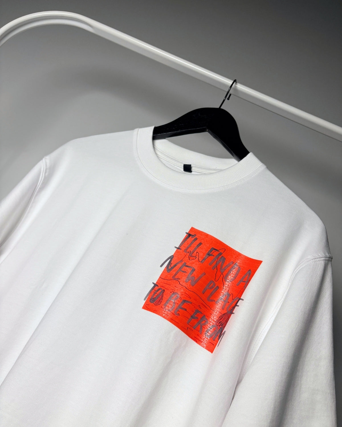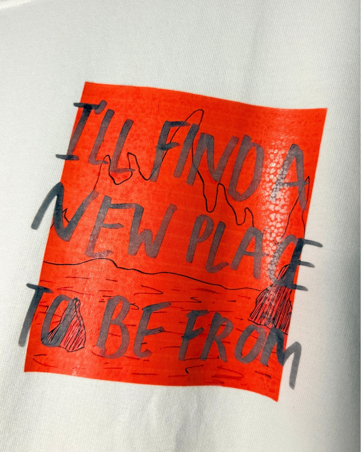 “NEW PLACE” - graphic is embedded using a state of the art direct-to-film technology in a 240 GSM 100% Cotton Fabric. Comes in an all new Classic V2 fit which is the same as the regular Classic Oversized Tees but slightly cropped in length.