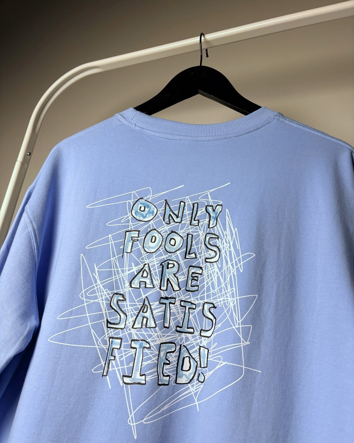 “SATISFIED” - graphic is embedded using a state of the art direct-to-film technology in a 240 GSM 100% Cotton Fabric. Comes in an all new V2 Plus fit which is the same as the regular Classic Oversized Tees but slightly cropped in length.